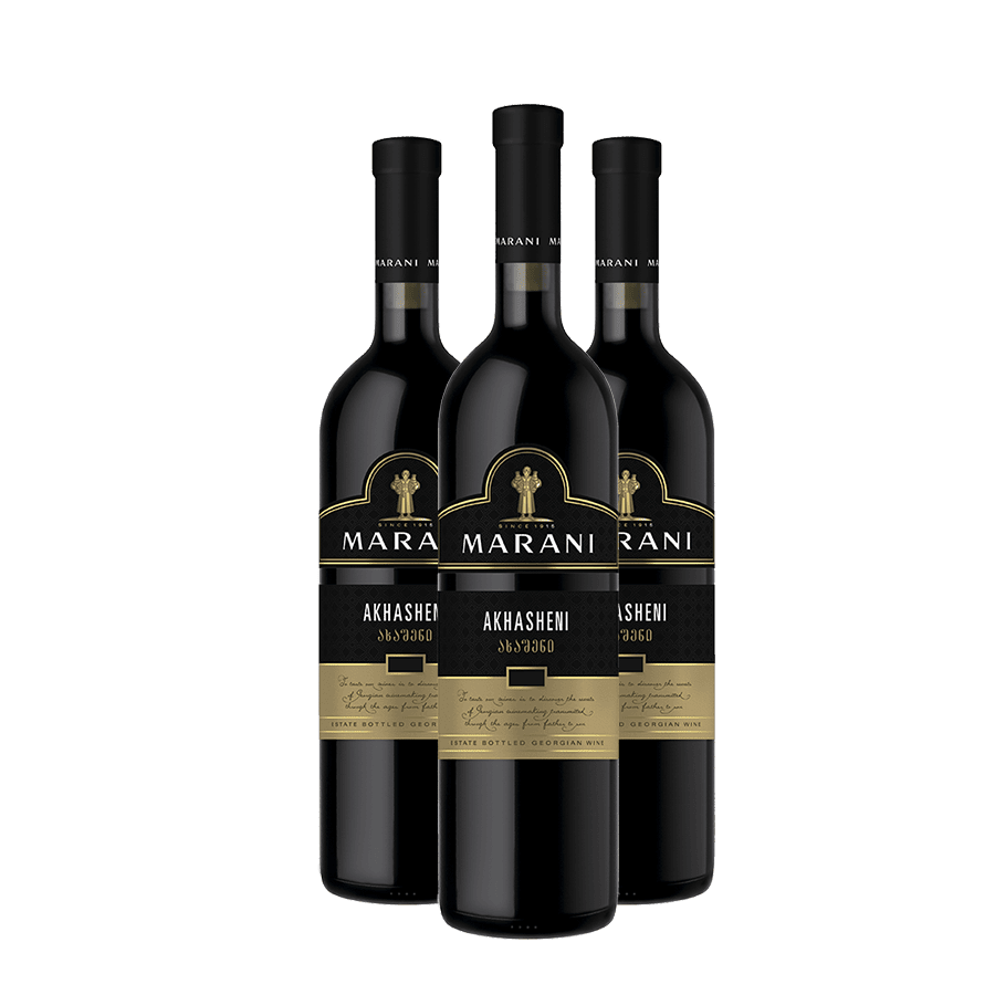 Erwarte einen tiefen Granatrot-Wein mit Ar omen von reifen Kirschen, Pflaumen und Waldbeeren. Am Gaumen ist Akhasheni samtig und sanft, bietet sanfte Süße, Kakao-Noten und einen langen, fruchtigen Abgang, der ihn sowohl elegant als auch leicht zu genießen macht.