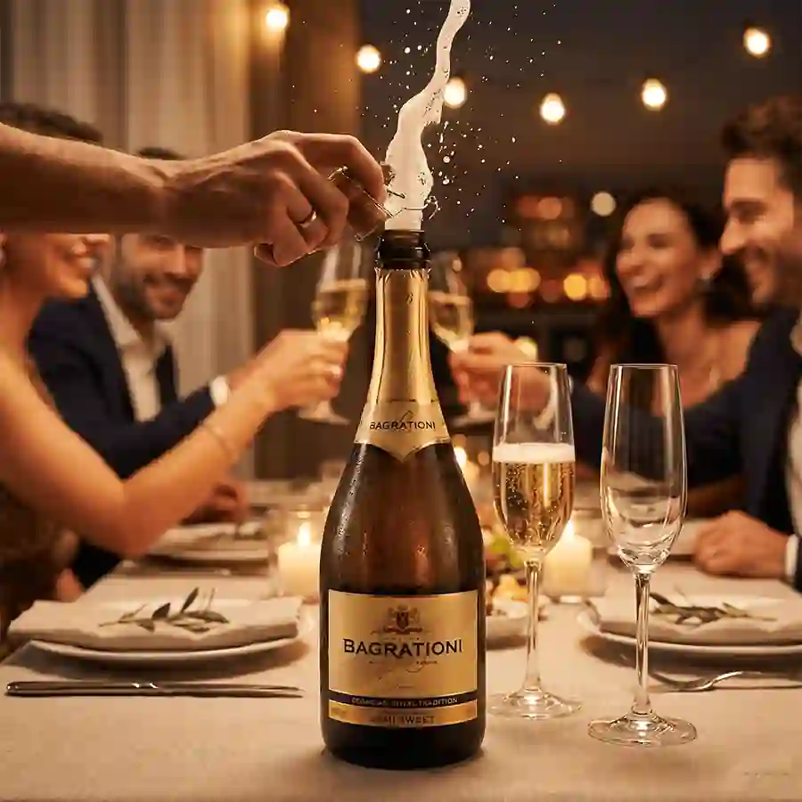 Der georgische Genuss-Tipp: Servieren Sie den Bagrationi Classic lieblich gut gekühlt bei etwa 6–8 °C. Aufgrund seines süßen Profils ist er ein hervorragender Begleiter zu festlichen Desserts, cremigen Torten oder einer Auswahl an frischen Früchten. Besonders spannend ist die Kombination mit salzigen Mandeln oder mildem Blauschimmelkäse, da die Süße des Schaumweins wunderbar mit den herzhaften Noten kontrastiert.