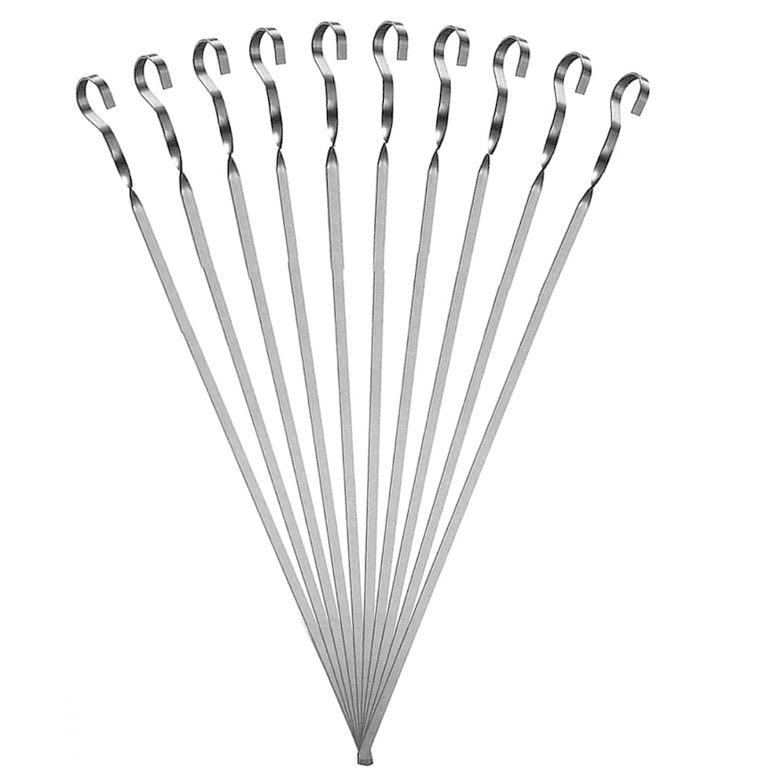Hochwertiger Grillspieß aus Edelstahl, ideal für die Zubereitung von Schaschlik, Fleisch und Gemüse. Das flache Design verhindert das Wegrollen von Fleisch/Gemüse und sorgt für gleichmäßiges Garen.