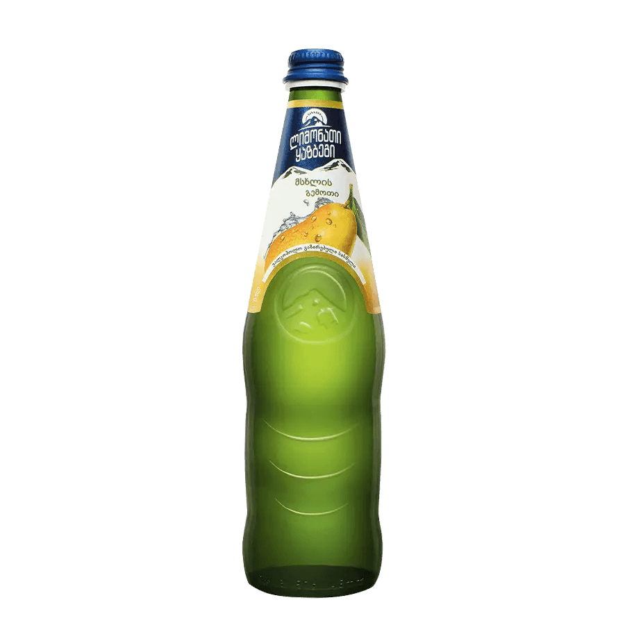 Kazbegi Birnenlimonade 0,5 l – Klassisches georgisches Erfrischungsgetränk mit natürlichem Birnengeschmack und leichter Kohlensäure. Süß, mild und erfrischend.