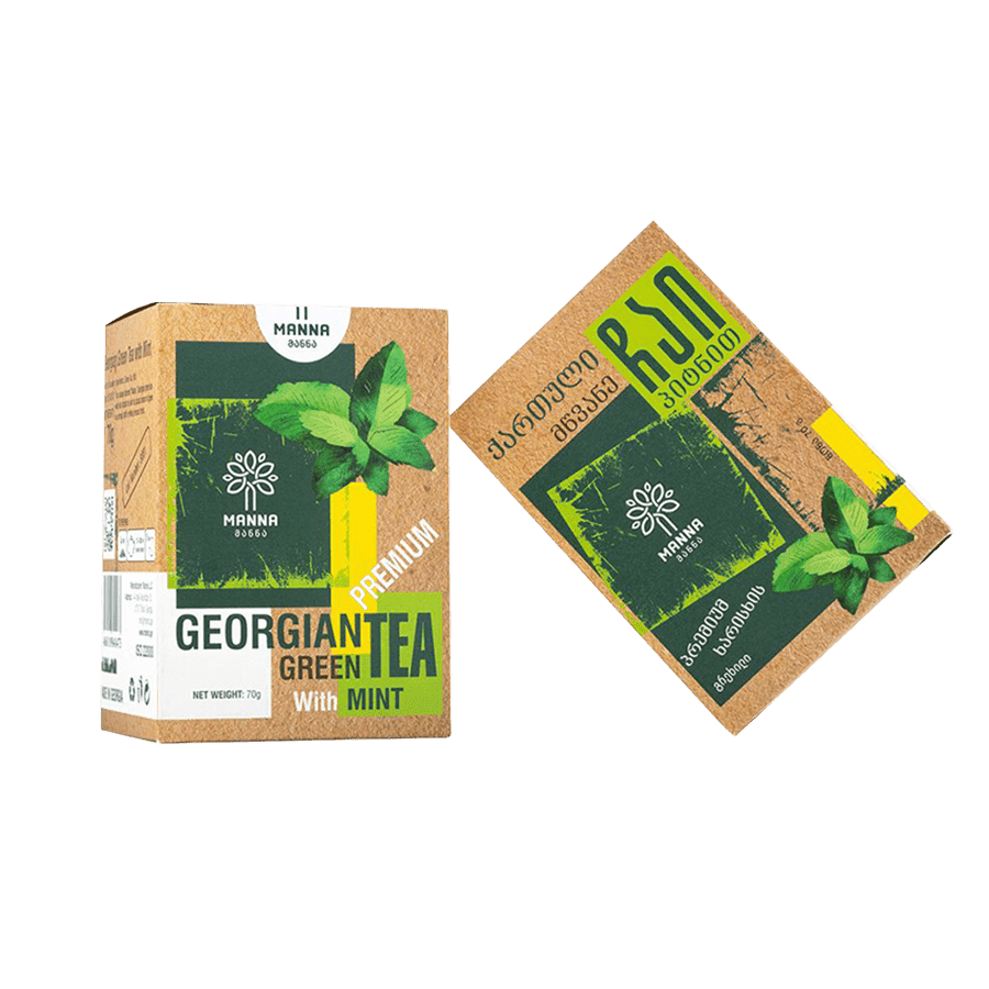 Georgischer Grüntee mit Minze – lose Blätter, 70 g. Aus natürlichem Anbau. Erfrischender, reiner Geschmack aus dem Kaukasus.