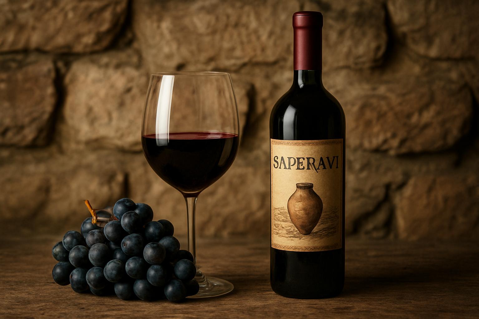 Georgien gilt als eine der Wiegen des Weins; archäologische Funde belegen Weinproduktion in der Region vor über 8.000 Jahren. Saperavi ist eine autochthone, also heimische Rebsorte, die seit Jahrhunderten in Georgien kultiviert wird. Der Name Saperavi kommt aus dem Georgischen und lässt sich ungefähr mit „ich färbe“ oder „Färbung“ übersetzen — ein Hinweis auf die ungewöhnlich stark gefärbte Beerenhaut und sogar gefärbtes Fruchtfleisch, denn Saperavi gehört zu den wenigen Teinturier-Sorten, deren Saft nicht farblos ist.