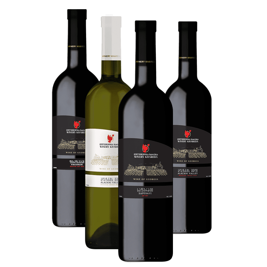 Weinpaket mit 4 Weinen vom Weingut Khareba: Pirosmani, Saperavi. Alazani Valley rot und weiß.